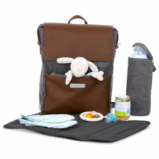 Im Wickel-Rucksack City mit Deckelfach in Street von ABC Design werden alle Dinge, die Du und Dein Baby unterwegs brauchen, besonders stilvoll transportiert. Der schicke Rucksack beinhaltet bereits wichtiges Zubehör, vom isolierten Flaschenhalter bis zur Wickelunterlage. Das stylishe Design mit Elementen in edler Lederoptik gefällt Mama und Papa gleichermaßen gut.
