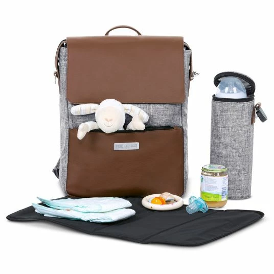 Im Wickel-Rucksack City mit Deckelfach in Graphite Grey von ABC Design werden alle Dinge, die Du und Dein Baby unterwegs brauchen, besonders stilvoll transportiert. Der schicke Rucksack beinhaltet bereits wichtiges Zubehör, vom isolierten Flaschenhalter bis zur Wickelunterlage. Das stylishe Design mit Elementen in edler Lederoptik gefällt Mama und Papa gleichermaßen gut.