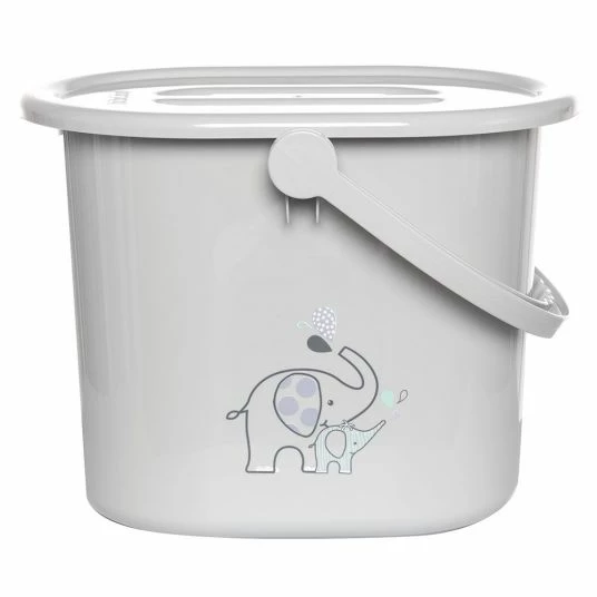 Der Windeleimer Ollie von bébé-jou ist mit seinem eleganten Grauton ein schöner Blickfang im Kinder- oder Badezimmer. Die Vorderseite des praktischen Eimers mit Deckel und komfortablem Griff, in welchem Du schnell und hygienisch die benutzten Windeln Deines Babys entsorgen kannst, wird von einem süßen Elefanten-Motiv geziert. Der Windeleimer hat ein extragroßes Fassungsvermögen von 13 Litern und lässt sich deshalb auch optimal zum Befüllen und Entleeren der Baby-Badewanne nutzen.