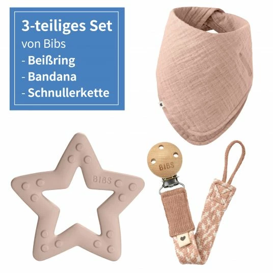 Mit dem 3-tlg. Baby-Zahnungshilfen-Set hat Dein Liebling ab ca. 6 Monaten die idealen Helfer in der Zahnungsphase: Der Beißring – Baby Bitie von BIBS in Blush besteht aus lebensmittelechtem Material – frei von BPA, PVC & Phthalaten. Durch das weiche und flexible Material eignet sich der Beißring ideal für Dein Kleines und erleichtert das Zahnen. Er passt perfekt in kleine Kinderhände und kann ohne Bedenken in den Mund genommen werden.