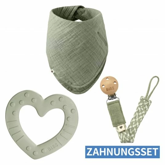 Mit dem 3-tlg. Baby-Zahnungshilfen-Set hat Dein Liebling ab ca. 6 Monaten die idealen Helfer in der Zahnungsphase: Der Beißring – Baby Bitie von BIBS in Sage besteht aus lebensmittelechtem Material – frei von BPA, PVC & Phthalaten. Durch das weiche und flexible Material eignet sich der Beißring ideal für Dein Kleines und erleichtert das Zahnen. Er passt perfekt in kleine Kinderhände und kann ohne Bedenken in den Mund genommen werden.