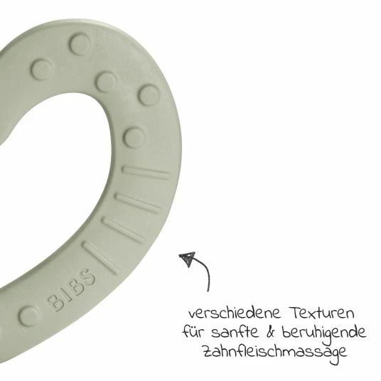 Die unterschiedlich ausgeprägte und strukturierte Oberfläche massiert beim Kauen das Zahnfleisch und beruhigt den Spannungsschmerz. Der BIBS Beißring wurde nicht nur speziell dafür entwickelt, die Zahnungszeit zu erleichtern, sondern zugleich die Sinne und Feinmotorik Deines Lieblings anzuregen. Dank der unterschiedlichen Texturen wird der Tastsinn gefördert. Der Beißring begeistert mit einem niedlichen Sternen-Design in schönem Farbton.