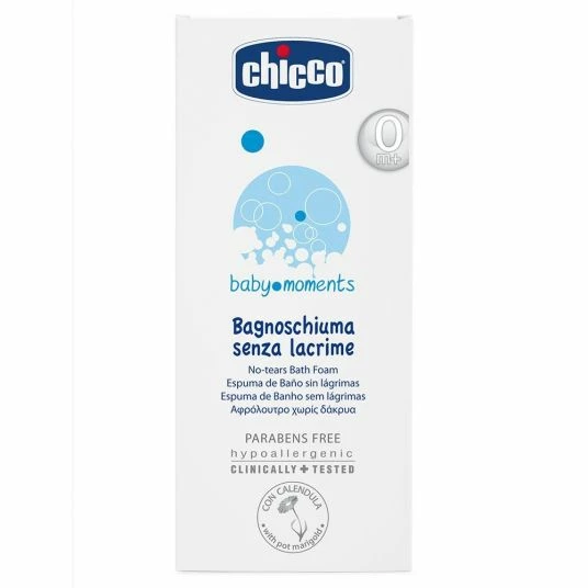 Extra sanft zu Babys sensibler Haut ist das milde Schaumbad „Bademomente“ von Chicco. Calendula pflegt die Haut und mindert Hautzreizungen. Die „keine Tränen Formel“ sorgt dafür; dass Babys Augen nicht brennen. Das Reinigungsbad hat einen hautfreundlichen pH-Wert und ist frei von Alkohol, Parabenen und Farbstoffen.