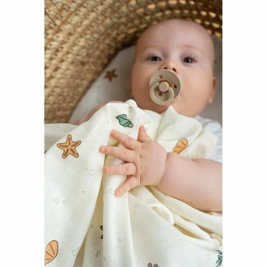 Die Tücher sind aus 100% feinster Bio-baumwolle gefertigt. Musselin ist ein lockeres, weiches Gewebe, das fließend fällt. Durch die Verwendung des qualitativ hochwertigen Materials aus reiner Baumwolle, sind die Mullwindel besonders atmungsaktiv, widerstandsfähig und nimmt Feuchtigkeit optimal auf, sodass alles schnell wieder trocken ist