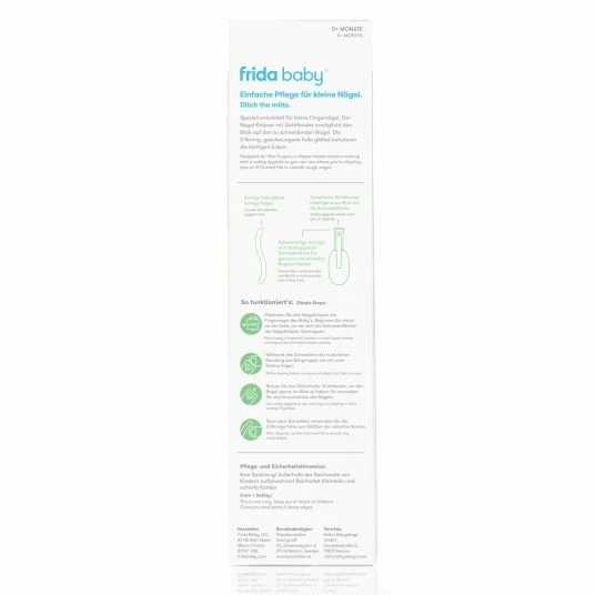 In den ersten Lebenswochen sind die kleinen Fingernägel noch sehr zart, aber etwa ab der sechsten Woche werden die kleinen Nägelchen schon fester. Da kann es schnell passieren, dass Dein kleiner Liebling Dich doch einmal kratzt. Nun wird es Zeit für Baby’s erstes, 2-teiliges frida baby Nagelpflegeset: Ausgestattet mit einem Knipser und einer s-förmigen Nagelfeile bist Du bestens zum Stutzen und Glätten der Babynägel ausgerüstet.