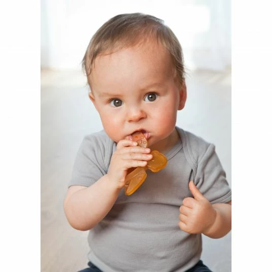 Das empfindliche Zahnfleisch lässt sich mit dem umweltfreundlichen Naturkautschuk angenehm massieren und nimmt Deinem Nachwuchs etwas Schmerz. Dank der kleinen Maße und leichtem Material eignet sich der weiche, biegsame Bio-Zahnungshelfer auch wunderbar für unterwegs.
