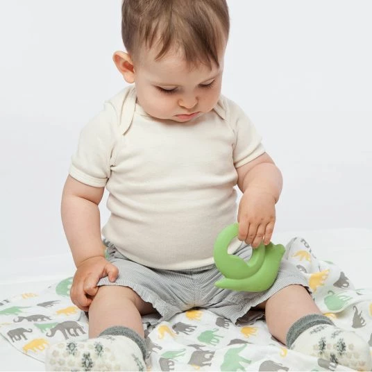 Babys entdecken die Welt mit Mund, Händen und Augen. Die natürliche Formgebung des Bio-Spieltiers – Schnecke von Grünspecht weckt die Neugier der Kleinen und lädt Babys Händchen zum Erkunden ein. So können spielerisch erste Erfahrungen mit verschiedenen Formen und Strukturen gemacht werden und der Greif- und Tastsinn wird ganz nebenbei trainiert. Das Spieltier eignet sich durch das Material auch ideal, um darauf herum zu kauen. Dadurch unterstützt es zahnende Babys beim natürlichen Zahnungsprozess.
