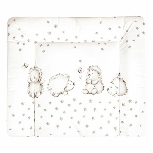 Hübsche und praktische Folien-Wickelauflage Softy Igelchen Weiß von Julius Zöllner. Die Oberfläche aus abwischbarer, phthalatfreier Folie kannst Du leicht und schnell mit einem feuchten Tuch reinigen. Auf der Füllung aus weichem Polyestervlies liegt Dein Baby beim Wickeln besonders bequem. Der erhöhte, abgesteppte Rand sorgt dafür, dass Dein Kleines nicht so leicht von der Auflage rollen kann. Dank der pflegeleichten und strapazierfähigen Folie bleibt das Innenkissen immer hygienisch sauber und trocken. Das süße, babygerechte Motiv ist ein hübscher Hingucker im Kinderzimmer. Du kannst die Wickelauflage wenden und beidseitig benutzen.