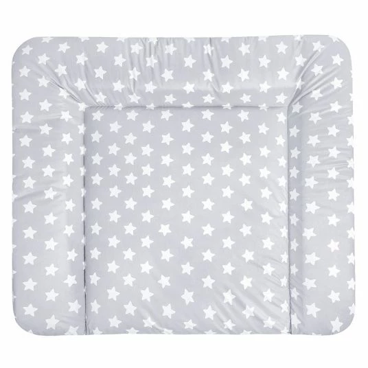 Hübsche und praktische Folien-Wickelauflage Softy Sterne Grau von Julius Zöllner. Die Oberfläche aus abwischbarer, phthalatfreier Folie kannst Du leicht und schnell mit einem feuchten Tuch reinigen. Auf der Füllung aus weichem Polyestervlies liegt Dein Baby beim Wickeln besonders bequem. Der erhöhte, abgesteppte Rand sorgt dafür, dass Dein Kleines nicht so leicht von der Auflage rollen kann. Dank der pflegeleichten und strapazierfähigen Folie bleibt das Innenkissen immer hygienisch sauber und trocken. Das süße, babygerechte Motiv ist ein hübscher Hingucker im Kinderzimmer. Du kannst die Wickelauflage wenden und beidseitig benutzen.