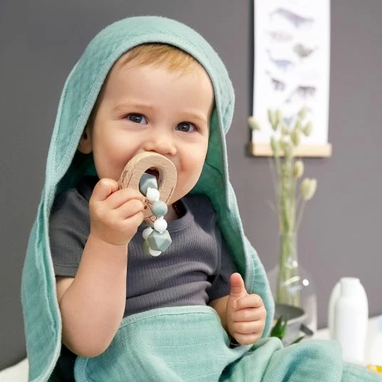 Der Greifling aus lebensmittelechtem Silikon hilft darüber hinaus bei den ersten Zähnen und kann schmerzlindernd wirken. Für noch mehr Linderung bei den ersten Zähnen kann der Greifling – Beißring auch in den Kühlschrank gelegt werden. Die perfekte Kombination aus Spielzeug und Beißhilfe.