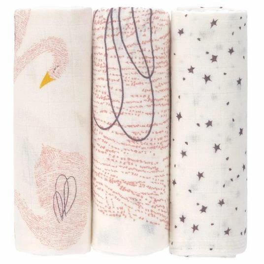 Die hübschen Bambus-Mulltücher Heavently Soft – Little Water Swan im 3er Pack von Lässig sind echte Allrounder. Du kannst die weichen Tücher als Spucktuch, Kinderwagendecke, Wickelunterlage, Schmusetuch oder zum Pucken verwenden. Sie sind zu 70 % aus nachhaltiger Viskose aus Bambusfaser und zu 30 % aus Baumwolle gefertig. Die atmungsaktiven Mulltücher sind sehr weich und werden nach jedem Waschen noch weicher. Bambus ist darüber hinaus ein sehr hautfreundliches Material und wird gleichzeitig ressourcenschonend gewonnen. Du erhältst drei der multifunktionalen Tücher, die mit unterschiedlichen, fröhlichen Aufdrucken verziert sind.