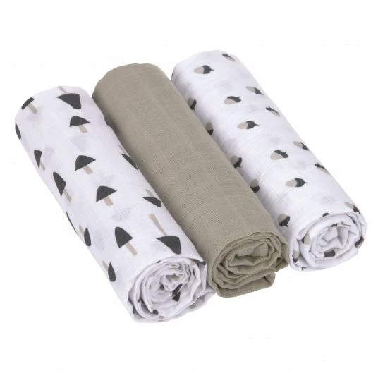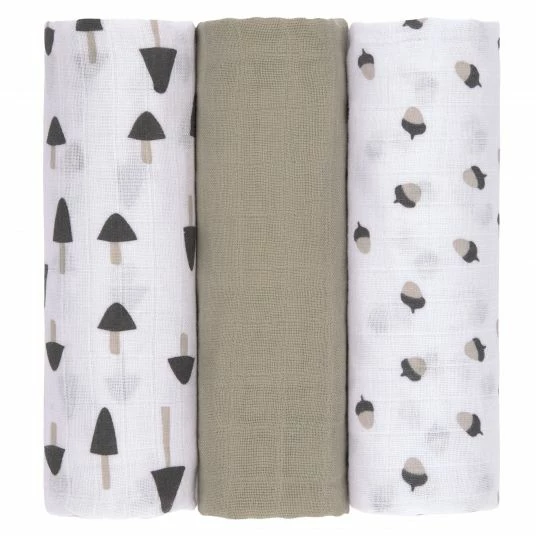 3 Lässig Mulltücher Swaddle & Burp Blanket L 85 x 85 cm – Little Forest – Olive