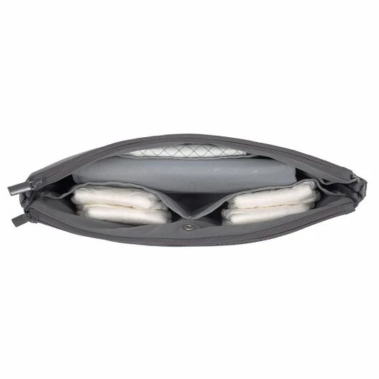 Im Changing Organizer sind alle Wickelutensilien durch durchdachte Fächer und ein helles Innenfutter übersichtlich verstaut. Während das wasserabweisende Feuchtfach nasse Kleidung ganz einfach verschwinden lässt, ist das wichtigste Zubehör im übersichtlichen Netzfach immer griffbereit.
