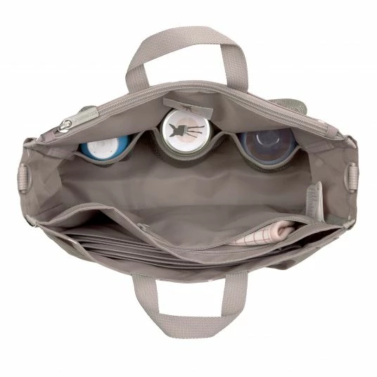 Viele durchdachte Innen- und Außenfächer sowie ein helles Innenfutter machen die Wickeltasche sehr übersichtlich. Im wasserabweisenden Feuchtfach kannst Du nasse Kleidung verstauen. Dank der wattierten, wasserabweisenden Wickelunterlage kannst Du Deinen Spatz unterwegs bequem wickeln.