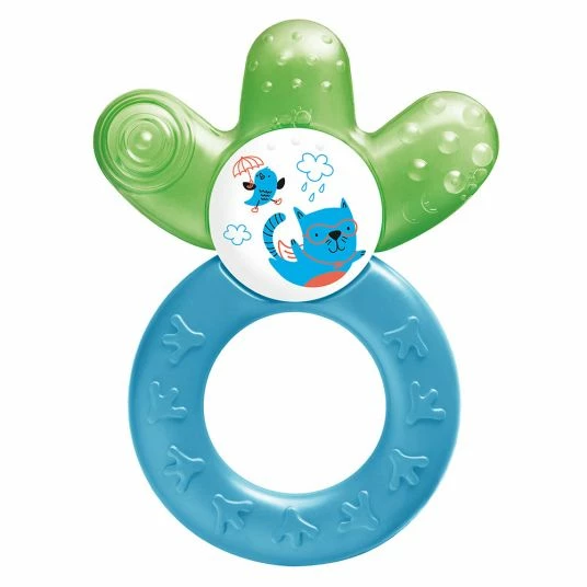 Beißring vor und nach jeder Verwendung auf Abnutzung und Beschädigung überprüfen und bei Bedarf rechtzeitig ersetzen. Nicht sterilisieren oder auskochen und keine Mikrowelle verwenden. Zum Desinfizieren kurz beidseitig mit heißem Wasser abspülen. Der Beißring wurde speziell für Kinder von 0 – 3 Jahren entwickelt. Ältere Kinder oder Erwachsene könnten den wassergefüllten Teil aufbeißen. Die Wasserfüllung ist harmlos und wird regelmässig überprüft.