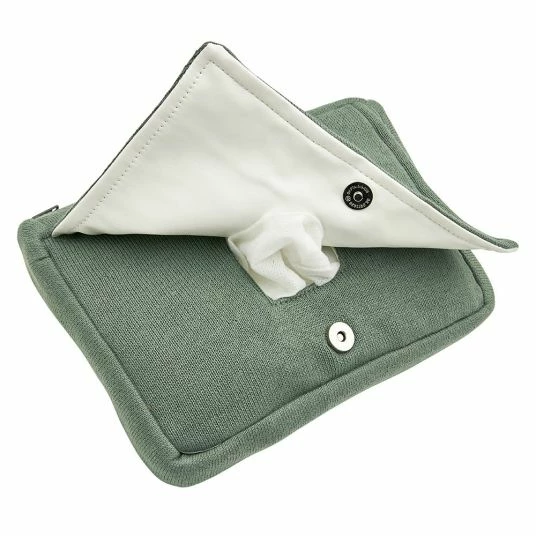 Im Alltag mit Baby sind Feuchttücher nicht wegzudenken und auch unterwegs immer mit dabei. Mit der angesagten Meyco Feuchttücher-Tasche Forest Green wird aus einer einfachen Feuchttuch-Packung ein richtig hübscher Hingucker. Der schicke Strickstoff in schönem Grünton verleiht den Feuchttüchern ein modernes, stilvolles Äußeres. Mit einem Druckknopf verschlossen, kommst Du schnell an die Feuchttücher heran.