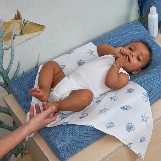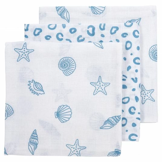 Mittlerweile ist die Auswahl an verschiedenen Windelarten sehr groß, die Mullwindeln bleiben dennoch sehr beliebt und weiterhin ein Klassiker. Mit den Meyco Mullwindeln im Design Shells Denim im praktischen 3er Pack mit einer Größe von jeweils 70 x 70 cm hast Du wunderbare Alltagshelfer. Sie sind nicht nur als Windel verwendbar, sondern auch als Waschlappen, Spucktuch, Wickelunterlage oder nach der Windelzeit sogar als Putztuch ideal geeignet.