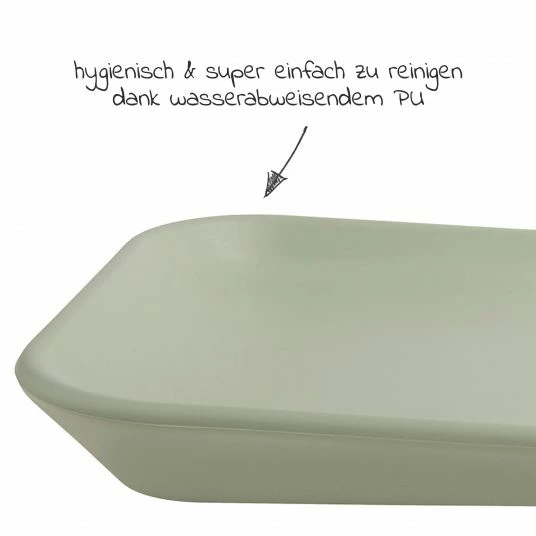 Fühlt sich Dein Kleines am Wickelplatz überhaupt nicht wohl, kann das Wickeln schon einmal zur Herausforderung werden. Auf der Nattou Wickelunterlage Softy in schönem Lindgrün hat es Dein Spatz besonders bequem. Bestehend aus super weichem PU liegen kleine Weltentdecker sehr komfortabel. Damit sich der Wirbelwind auch nicht so leicht von der Unterlage herunterrollen kann, bieten die erhöhten Ränder zusätzlichen Halt.