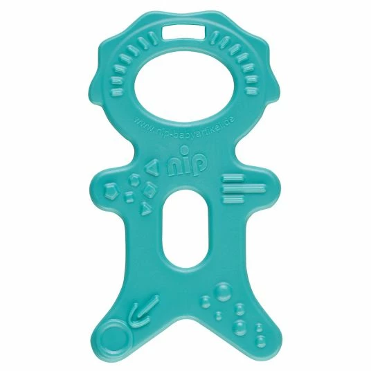 Die Beißfigur Mr. Denty in Türkis von NIP begleitet Deinen kleinen Schatz durch die schwierige Zahnungsphase. Die lustige Figur ist leicht zu greifen und fördert den Tastsinn Deines Babys. Gleichzeitig sorgt das Beißmännchen für Schmerzlinderung: 8 verschiedene Kauzonen massieren das Zahnfleisch Deines Kleinen und sorgen für angenehmen Druck auf seine empfindlichen Zähnchen. Mit der integrierten Dosierhilfe kannst Du außerdem Zahnungsgel punktgenau an die richtige Stelle im Mund setzen – und das absolut sauber und hygienisch.