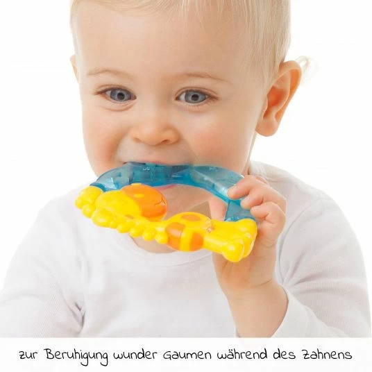 Beißring Jerry Giraffe – wassergefüllt – Blau/Gelb