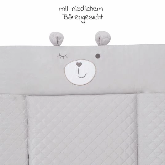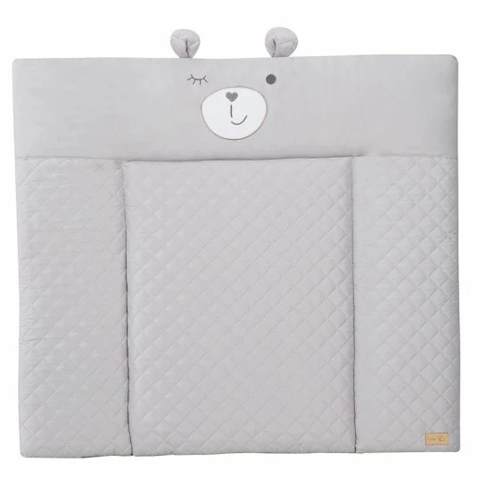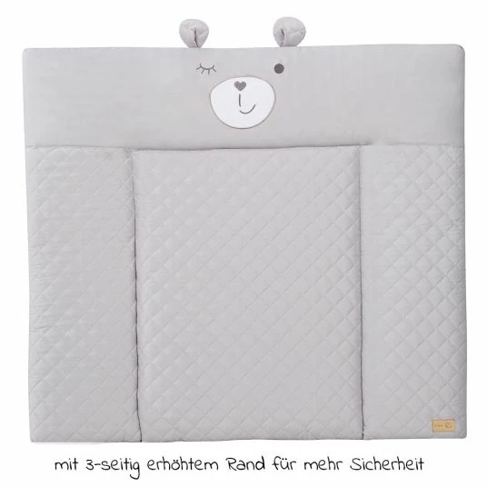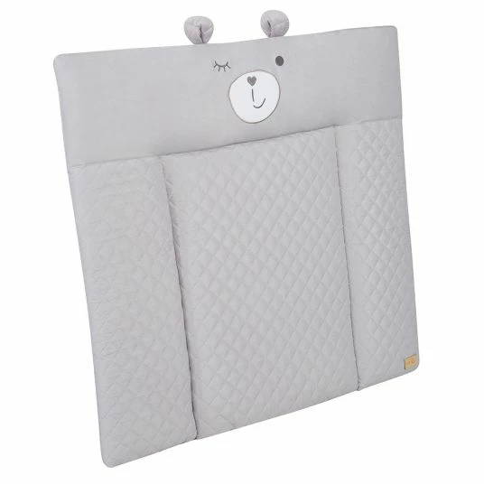 Wickeln finden die Kleinsten nicht immer so toll, umso wichtiger ist es, dass sie sich an ihrem Wickelplatz wohlfühlen. Auf der Roba Wickelauflage Soft – Roby Style Sammy Silbergrau mit Bärengesicht mit 70 x 85 cm liegt Dein kleiner Schatz gut gepolstert: Die weiche Polsterung der Auflage besteht aus flauschigem PolyesterVlies, so dass Dein Nachwuchs bequem liegen kann. Damit es dabei jederzeit möglichst sicher liegt, ist die Auflage mit einem 3-seitigen, erhöhten, abgesteppten Rand ausgestattet.