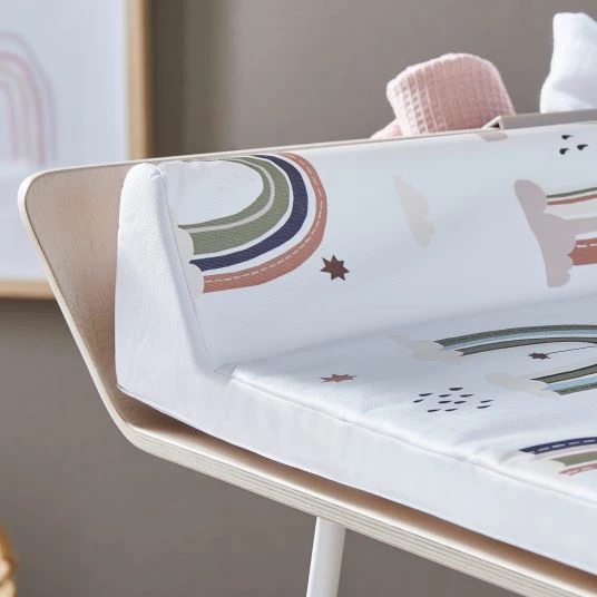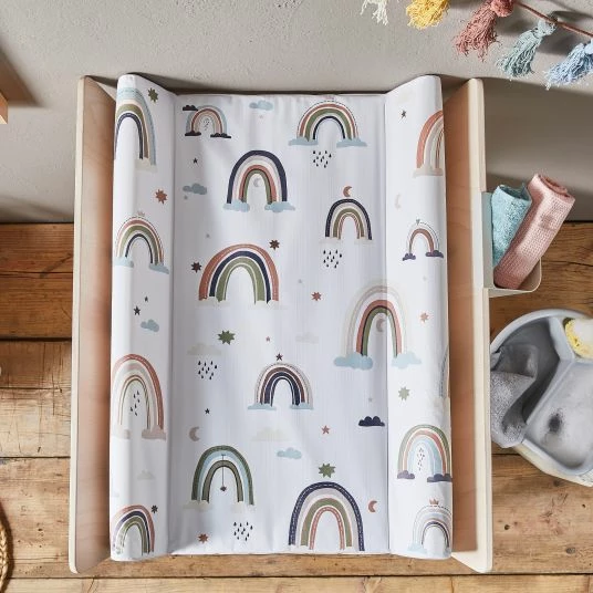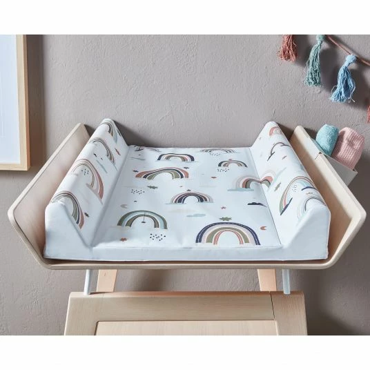 Die wasserabweisende Oberfläche ist abwischbar und so im Nu wieder sauber. Die schönen Regenbogen machen sie zu einem süßen Hingucker im Babyzimmer. Durch die Oeko-Tex Zertifizierung hast Du die Sicherheit, dass alle Materialien der Wickelmulde völlig unbedenklich für Dein Baby sind.