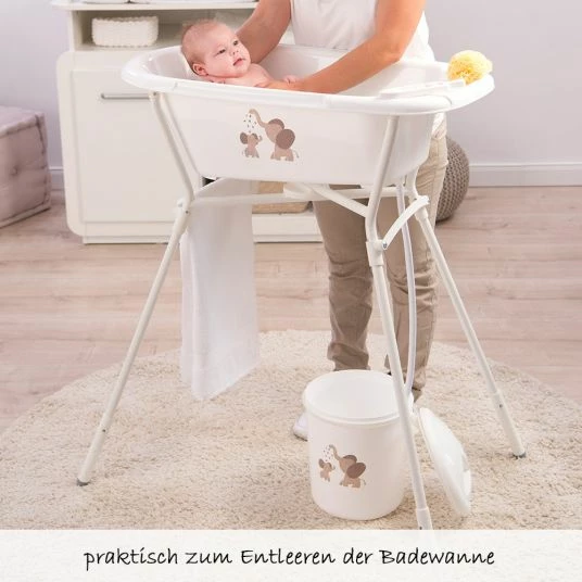 Der stabile Windeleimer Bella Bambina im Design Modern Elephants von Rotho Babydesign ist ein schöner Blickfang im Kinder- oder Badezimmer. Die Vorderseite des praktischen Eimers ziert ein süßer Druck von 2 Elefanten. Der Windeleimer hat einen losen Deckel, der den Eimer dicht verschließt und einen Tragegriff. Das Fassungsvermögen beträgt 10 Liter und durch den hochwertigen Kunststoff ist der Artikel besonders langlebig.