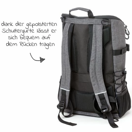 - Pflege: Rucksack: Mit einem feuchten Tuch abwischen, Wickelunterlage: Handwäsche
