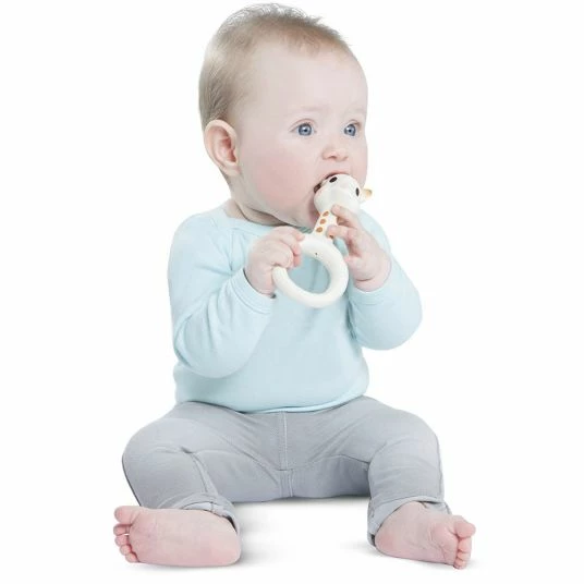 Machen sich die ersten kleinen Zähnchen bei Deinem Baby bemerkbar, ist das meistens mit Schmerzen verbunden. Die süße Giraffe als Beißring aus Naturkautschuk – Sophie la girafe® So Pure begleitet Deinen kleinen Engel durch die Zahnungsphase und trägt zur Linderung der Schmerzen bei. Der Ring, an welchem der kleine Entdecker Sophie gut festhalten kann, ist mit einer strukturierten Oberfläche ausgestattet.